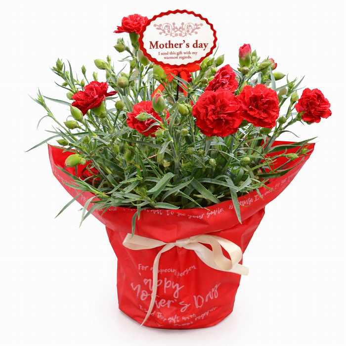 [PARAVOCE(パラボッセ)]送料込 赤カーネーション 5号鉢(鉢カバー付き)[母の日]